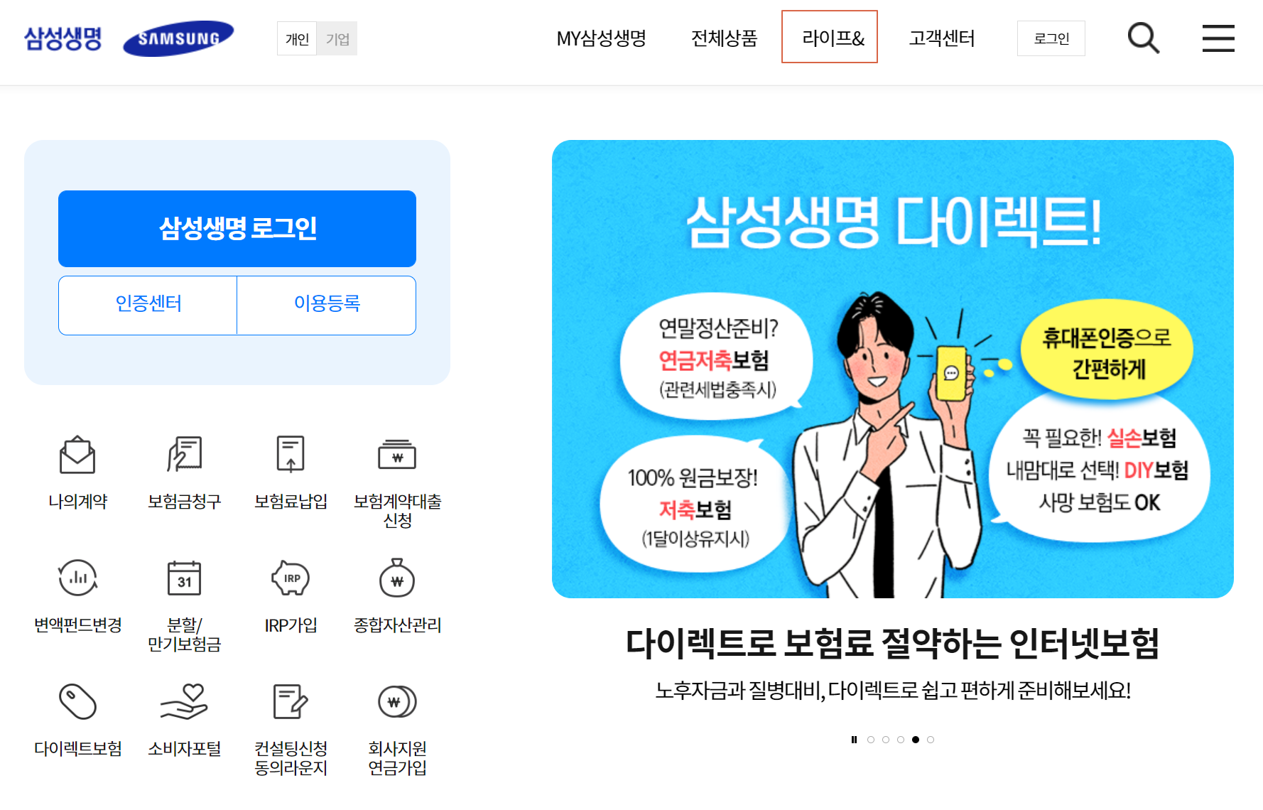 다음에서 위와 같이 삼성생명으로 검색하거나 삼성 토정비결로 찾아서 홈페이지 접속하시면 됩니다. 안으로 들어가신다면 상단 메뉴 중 라이프를 눌러주세요.