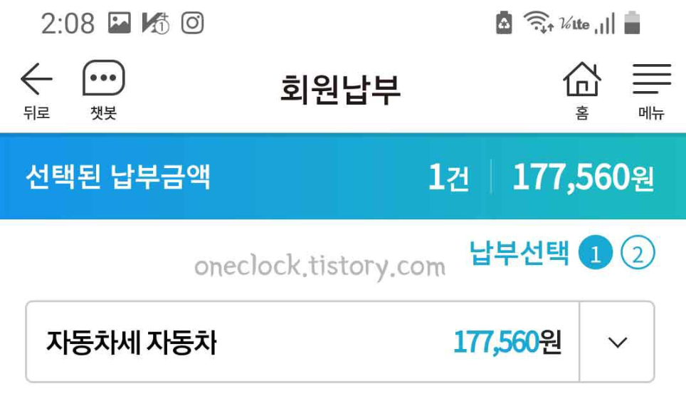 3. 제가 운행하는 차량은 177,560원이라는 금액이 나왔습니다. 1,500cc 자동차를 타고 다니고 있습니다. 아반떼 정도의 배기량이라면 몇 년식이냐에 따라서 조금 다르겠지만 저와 비슷하게 나온다고 보면 됩니다.