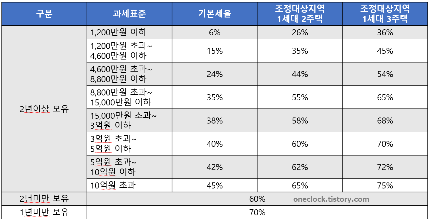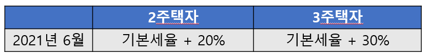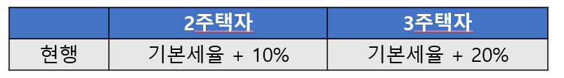 위에 표로 알아본 내용에 나온 기준은 이렇게 정의된 것입니다. 기존에는 기본세율에 + 10% (2주택자)를 먹인것이고 3주택자라면 기본세율 + 20%를 부과한 것이였습니다.