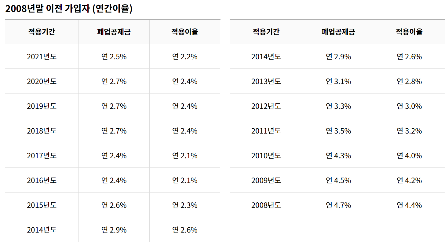 이걸로 그치질 않습니다. 중간에 안한다고 하면 그동안 소득공제 혜택을 받았던 베네핏 또한 그대로 내놔야합니다. 폐업하거나 직장에서 퇴임하거나 아니면 나이가 들어서 노령으로 인한 사망이 아니라면 위에 언급한 모든 혜택은 그대로 공중소멸됩니다.