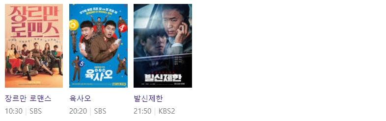 코메디물을 좋아하면 육사오, 가벼운 로멘스물을 좋아하면 장르만 로멘스를 선택해서 보시면 됩니다. 발신제한은 조우진과 지창욱이 주연으로 나옵니다. 해외 영화 리메이크물로 제네시스 광고를 1시간 넘게 보는 듯한 착각에 빠지게 됩니다.