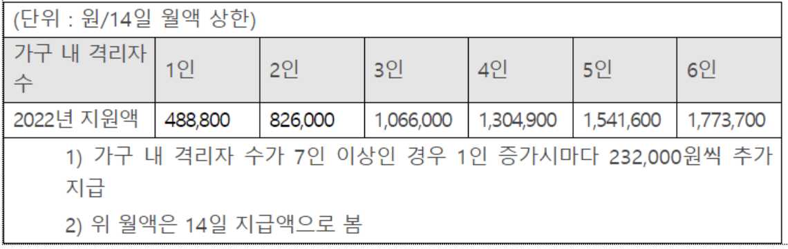 2주란 시간이 짧으면서도 상당히 길기에 나라의 보조를 받을 필요가 있습니다.