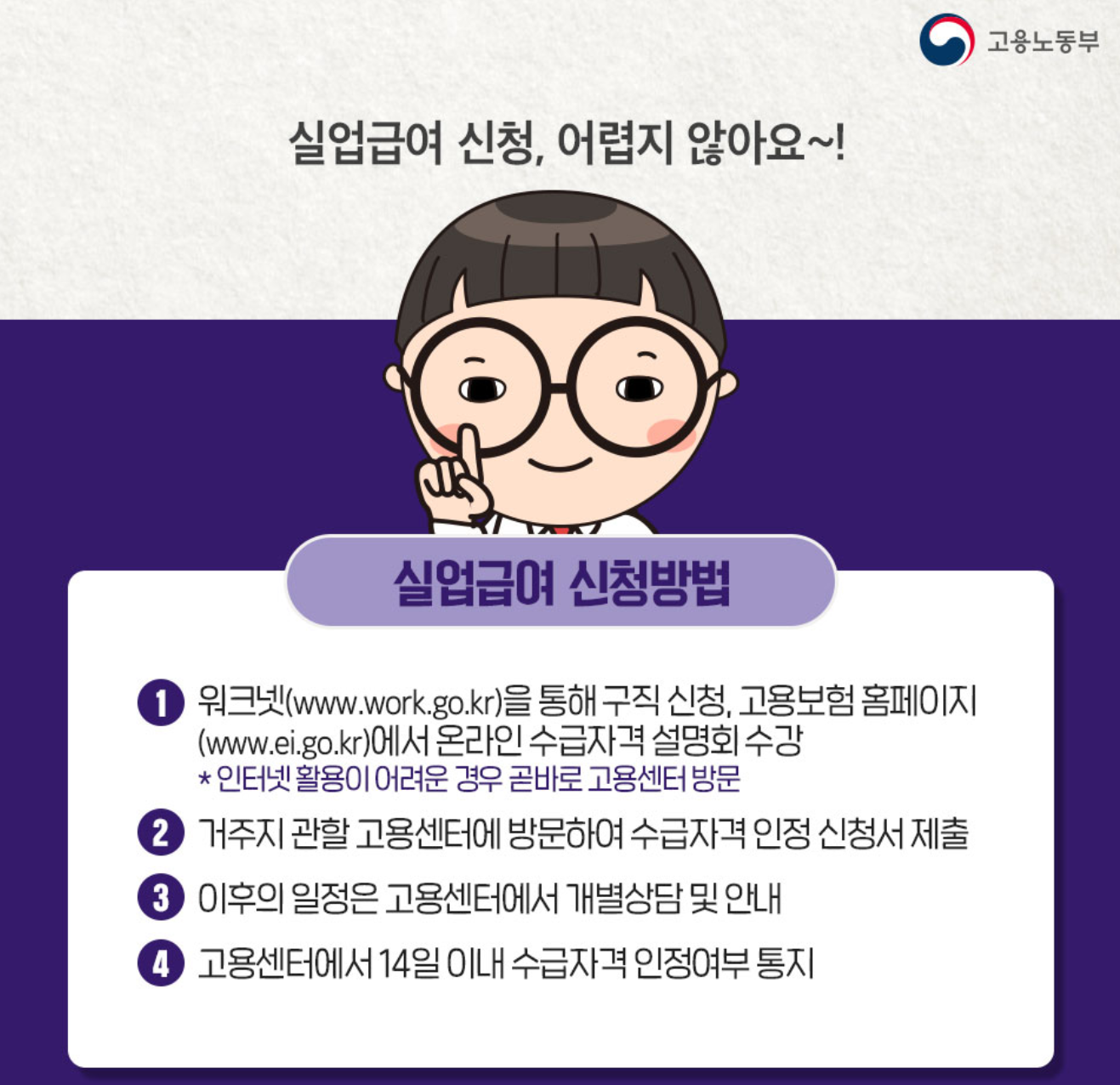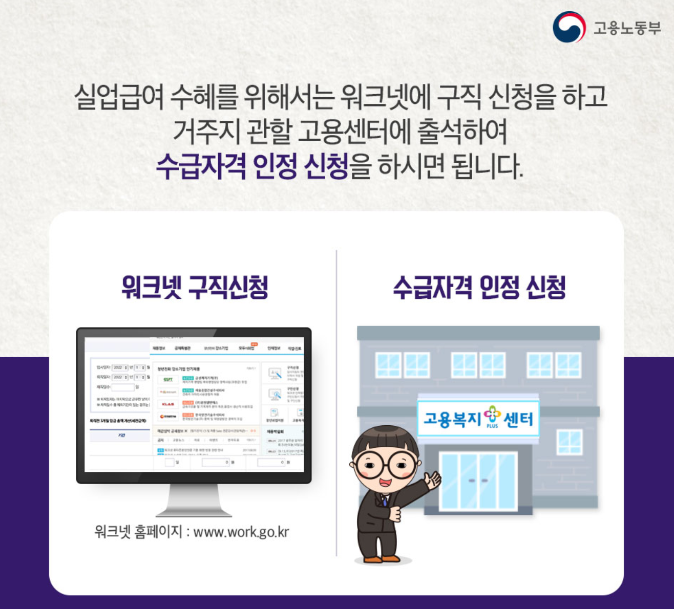 1. 워크넷을 통해 구직신청 및 고용홈페이지에서 온라인 수급자격 설명회 수강