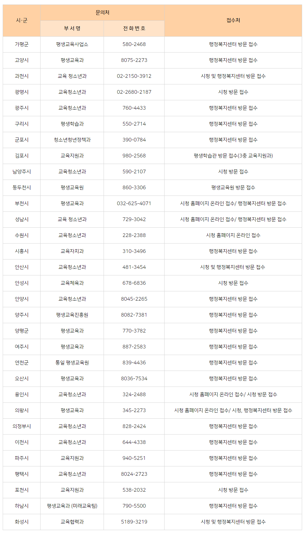 | 가평군 | 고양시 | 과천시 | 광명시 |