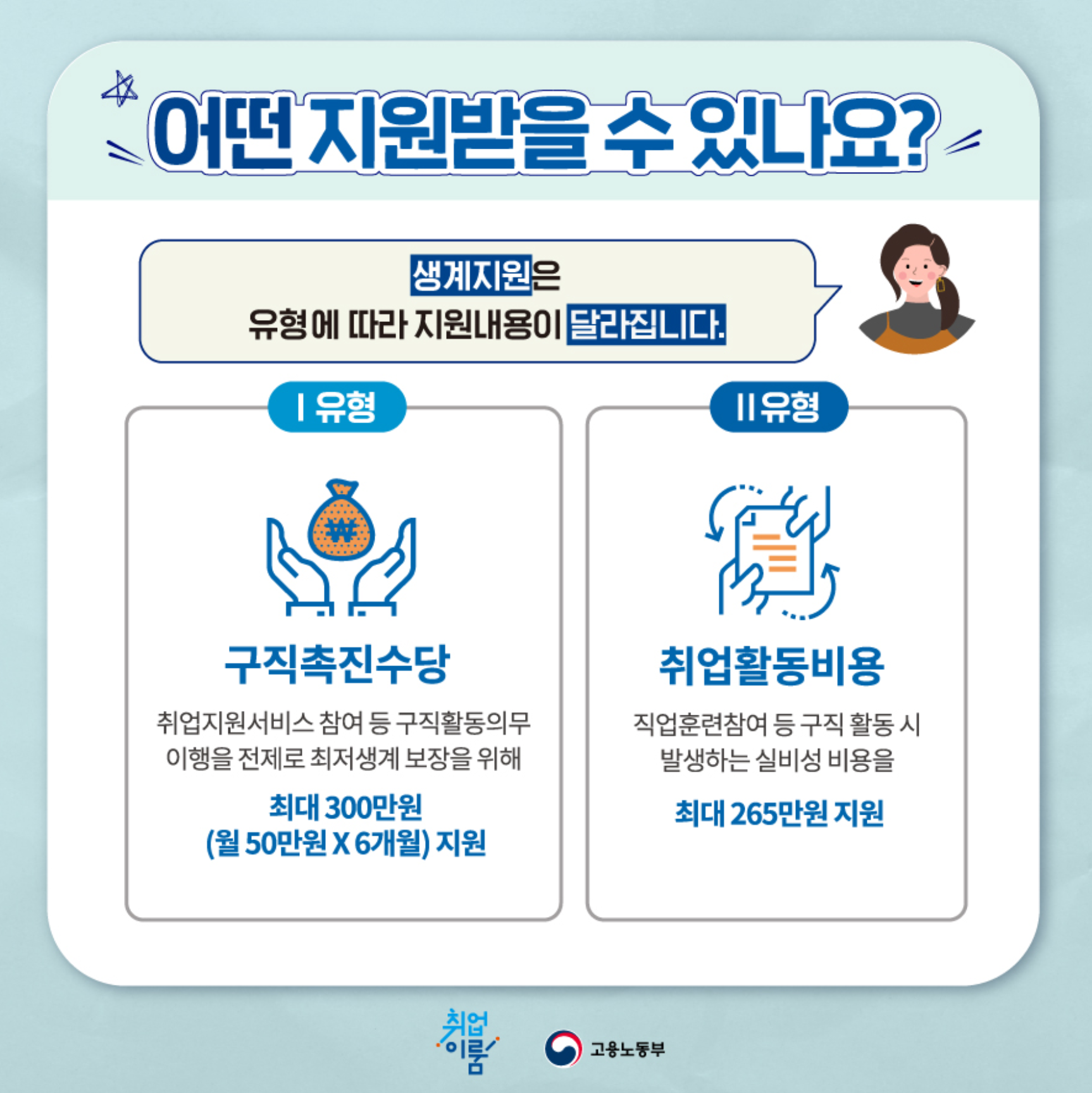 한마디로 취약계층을 전범위적으로 지원해서 실업률을 대폭 낮추겠다는 목표를 설립하고 시행하는 정책입니다. 총 300만원 (월 50만원씩 6개월간)을 받을 수 있는만큼 다음 신청페이지에서 접수해보세요.
