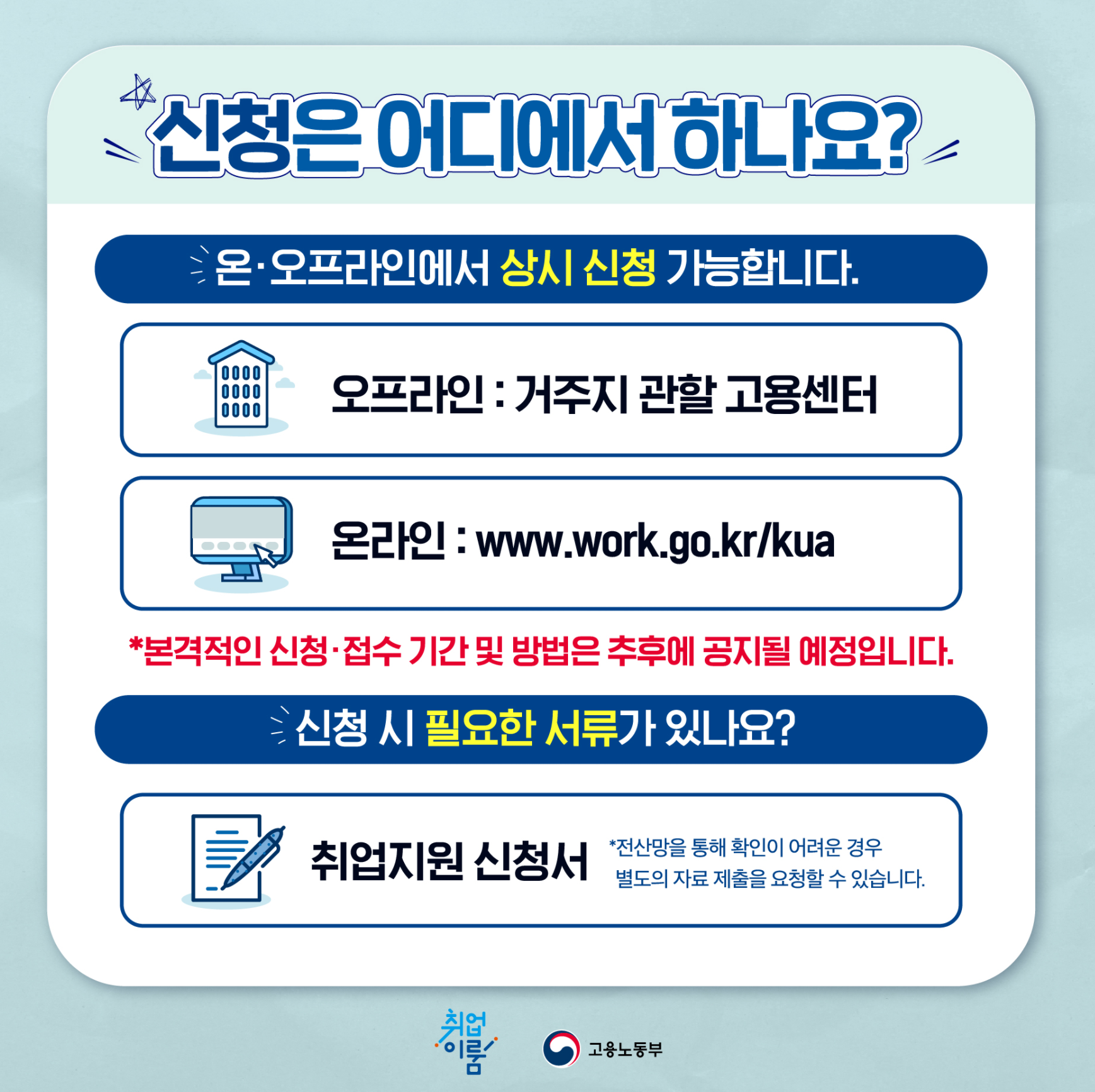 오프라인 거주지 관할 고용센터로 가면 상시 신청 가능합니다. 또는 글 시작하는 첫머리에 올려드린 국민취업지원제도 홈페이지로 곧장 갈 수 있습니다. 바로가자라는 말을 괜히 적은게 아니죠.