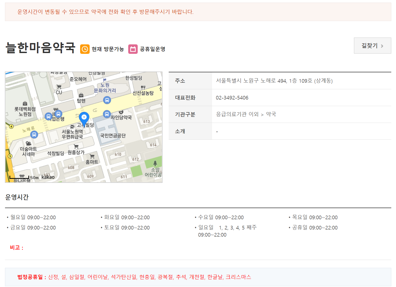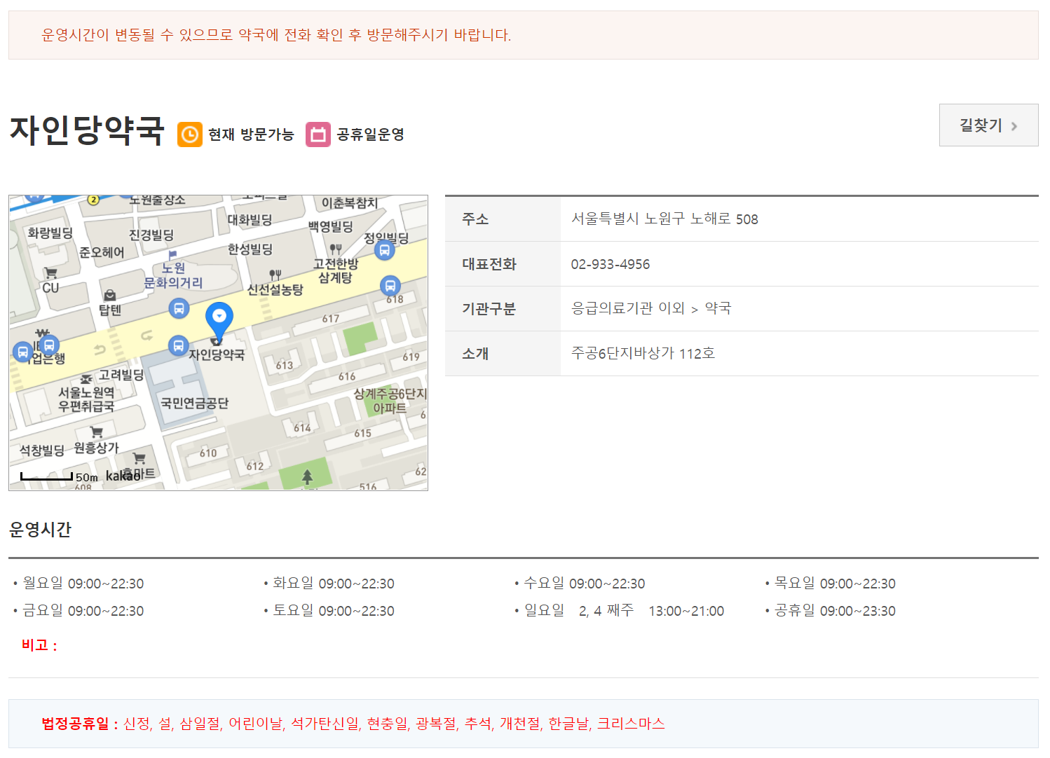이렇게 찾아볼때 유일하게 주의할 점이라고 한다면 갑자기 약사님이 자리를 비우는 경우도 있을 수 있는만큼 한번 정도는 물어보고 진짜로 영업을 하는지 확인하고 가야 한다는 점입니다.