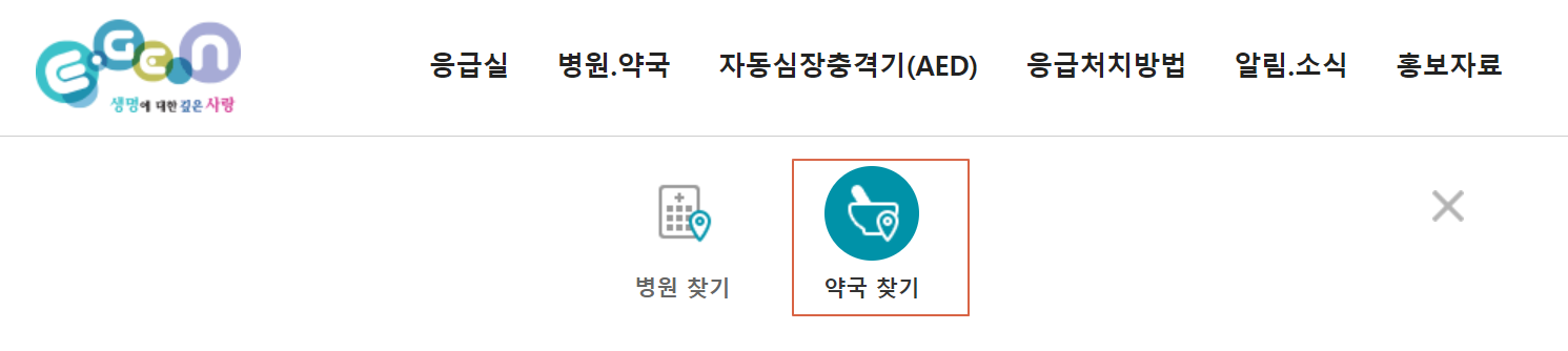 약국 찾기란 항목이 당당히 보입니다. 이걸 그대로 클릭하세요.
