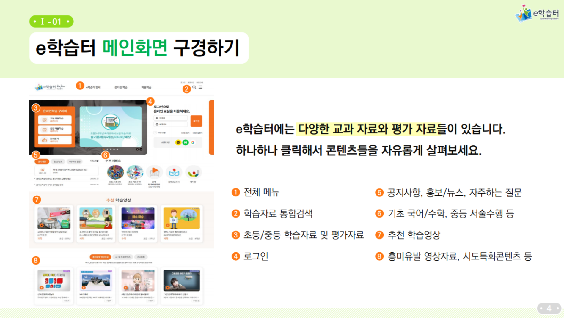 17개 시도 통합 초등학교,중학교 온라인 학습 서비스. 2015개정교육과정 콘텐츠, 평가문항등 제공.