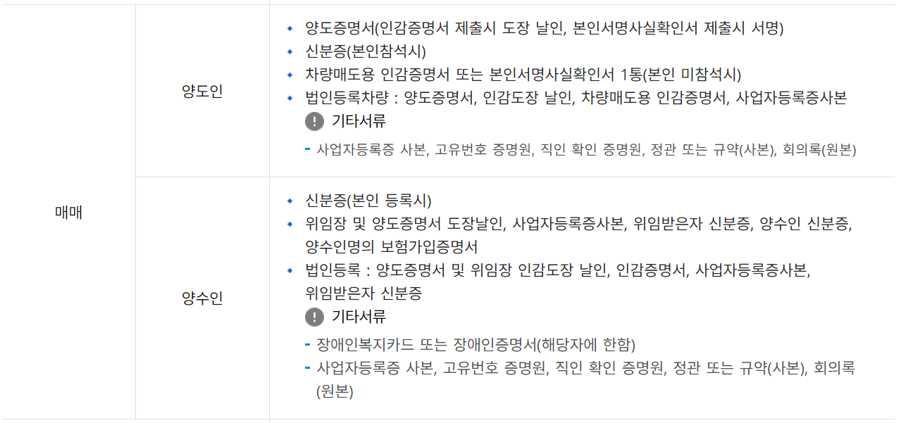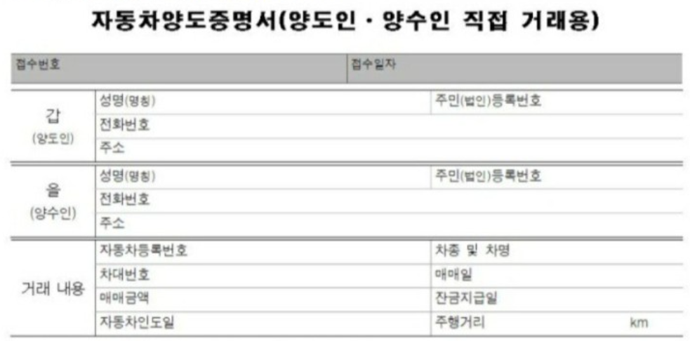 서로간 거래내역을 증명하는 서류라고 보면 됩니다. 대부분은 시청이나 구청 그리고 차량등록사업소 내부에 비치되어 있으니 미리 준비할 필요는 없습니다.