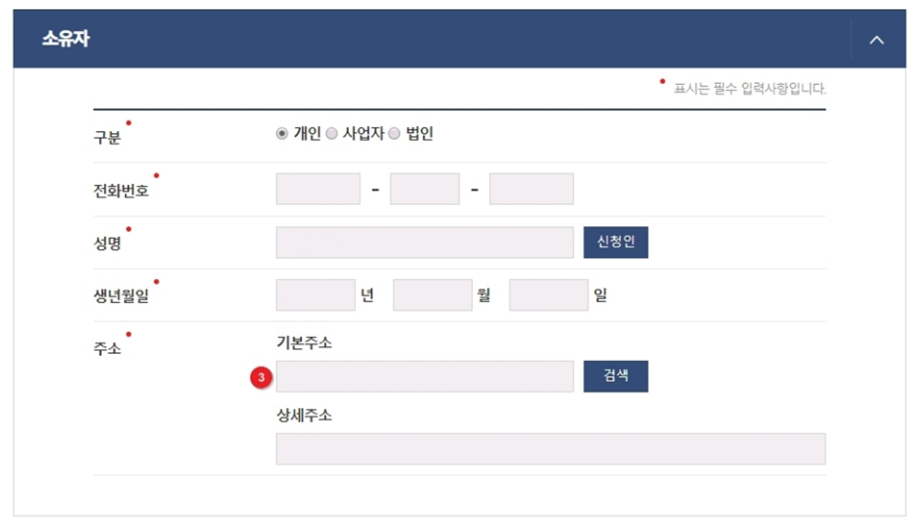3. 법인도 차량등록증을 재발급 할 수 있으며 구분란에 체크만 잘하면 됩니다. 나머지 사항은 회사 소유에 따른 자료를 그대로 보고 틀린 내역이 없이 똑바로 기입하면 됩니다.