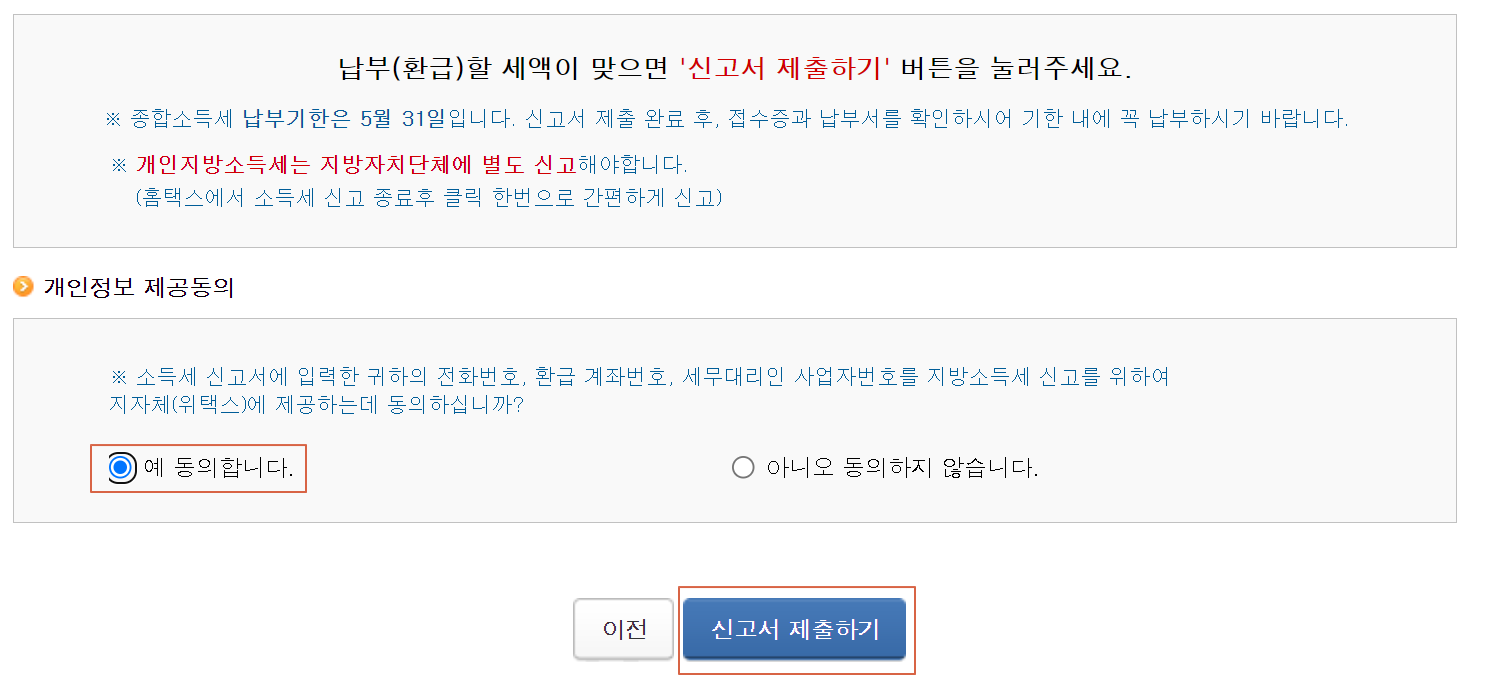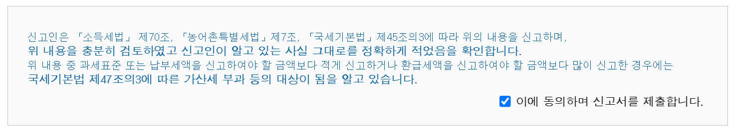 19. 동의하고 신고서를 제출합니다. 따로 체크하고 그럴건 거의 없다고 보면 됩니다.