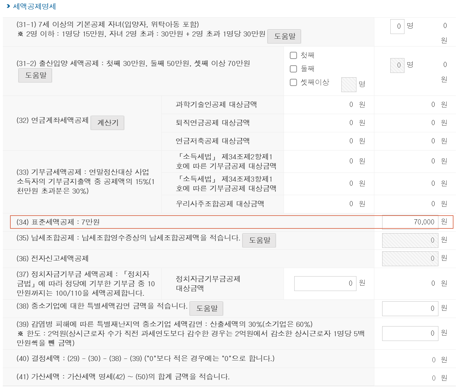 12. 표준세액공제로 7만원이 들어갑니다.
