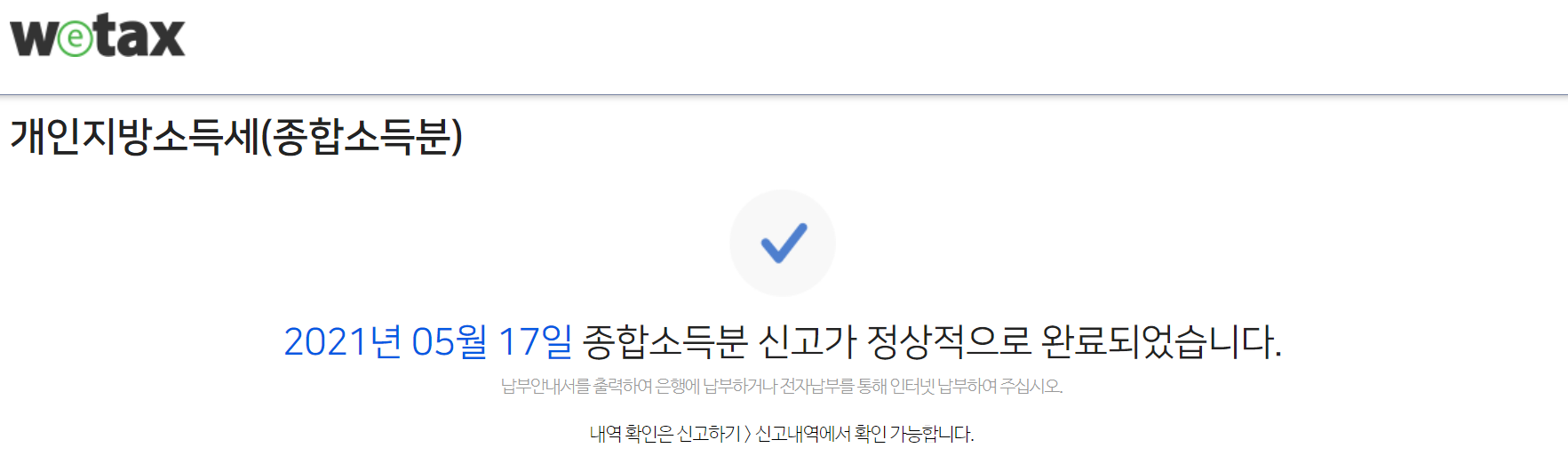 17. 제출하기를 누르게 되면 끝입니다. 이렇게 말씀드리고 싶지만 지방세는 위택스로 들어가서 따로 내야만 합니다. 과거에는 이것도 따로 검색해서 찾아 들어가곤 했지만 지금은 바로 연동이 되게끔 변경해놨네요.