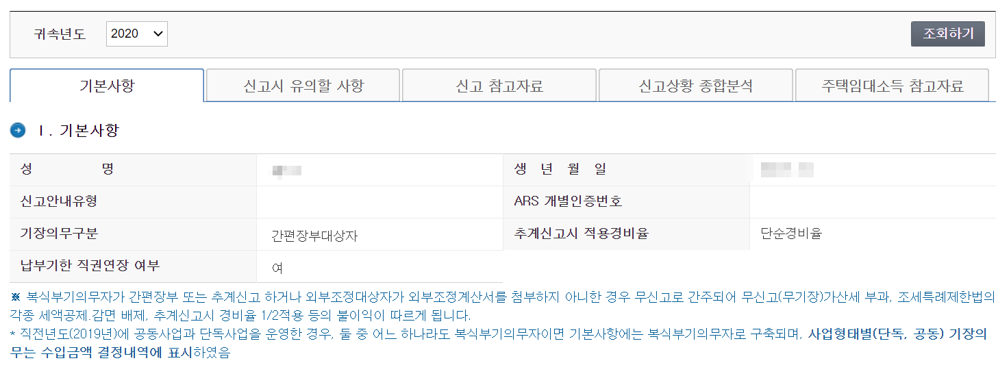 6. 신고상황 종합분석을 보면 이전년도에 제가 신고했던 내역도 나옵니다. 이번에 처음하는 분들은 당연히 안나올테니 크게 신경쓸 필요는 없습니다.