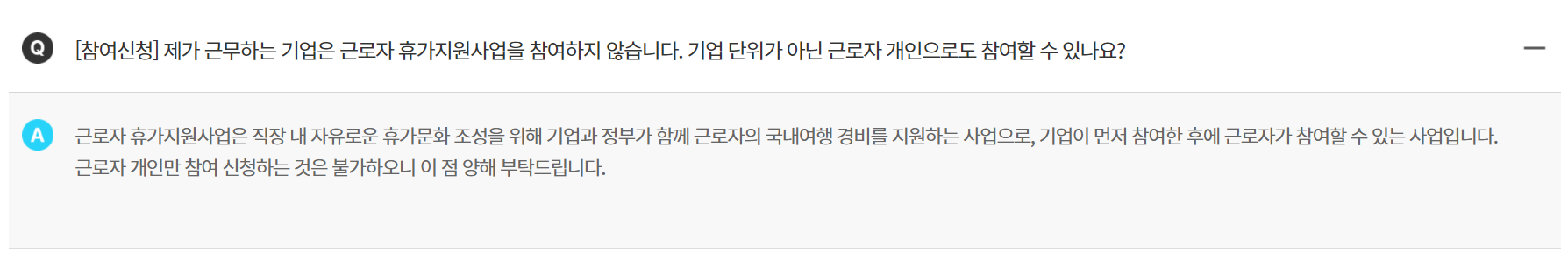 기업 자체적으로 2023 근로자 휴가지원 사업에 참여하지 않는다면 근로자 개인이 동참할 수 있는 방법이 없습니다. 어떻게든 회사 사장님을 설득해서라도 도움이 될 수 있는 방향으로 나가야 합니다. 설득이 되지 않는 곳이라면 달리 방법이 없습니다. 퇴사하고 다른 곳 가기도 정 때문에 쉽지 않으니 말이죠.