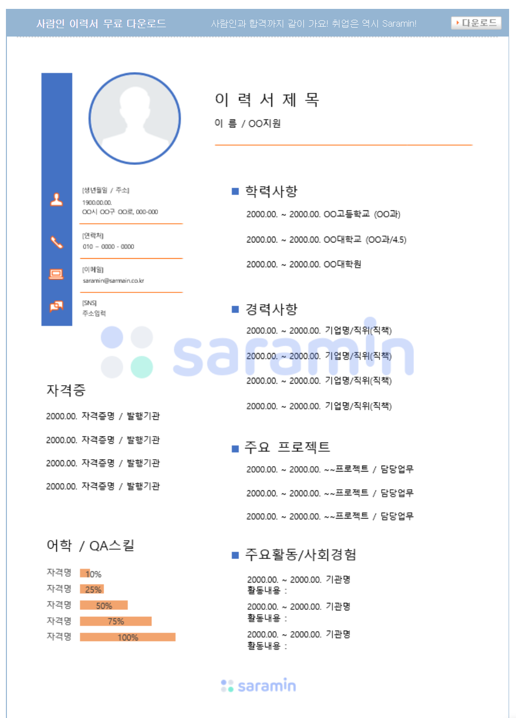 사람인 이력서 양식