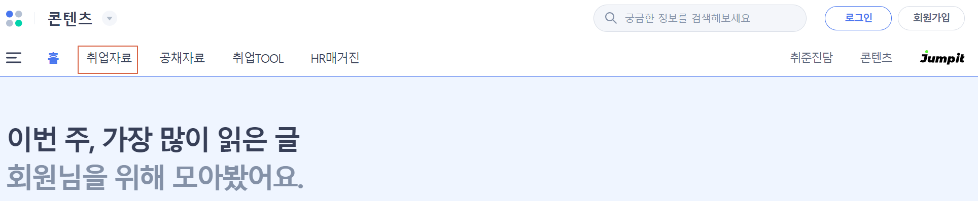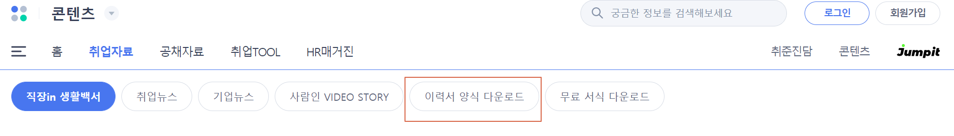 2. 한눈에 딱 봐도 들어오는 '취업자료' 란을 누릅니다.