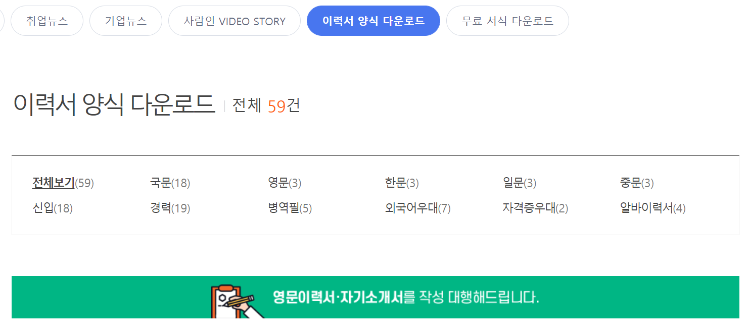 하지만, 오랜만에 다시 알아보니 이제는 더이상 별도의 지출을 할 필요가 없더군요. 사람인에서 59종이나 되는 디자인된 이력서 양식을 공유하니 말이죠. 필요한 분들은 받아서 마음껏 쓰세요. 모두 0원이며 배포 또한 자유입니다.