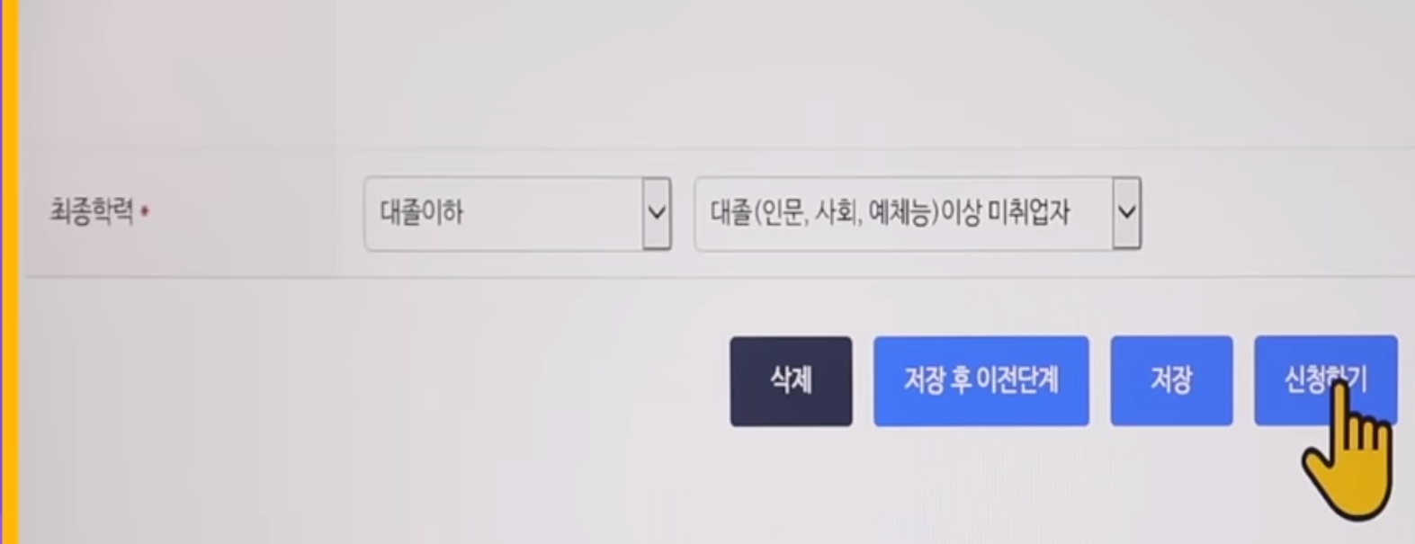 6. 이런저런 사항들을 입력하다가 최종학력까지 나오면 거의 다 끝난 겁니다. 신청하는걸로 마무리 짓습니다.