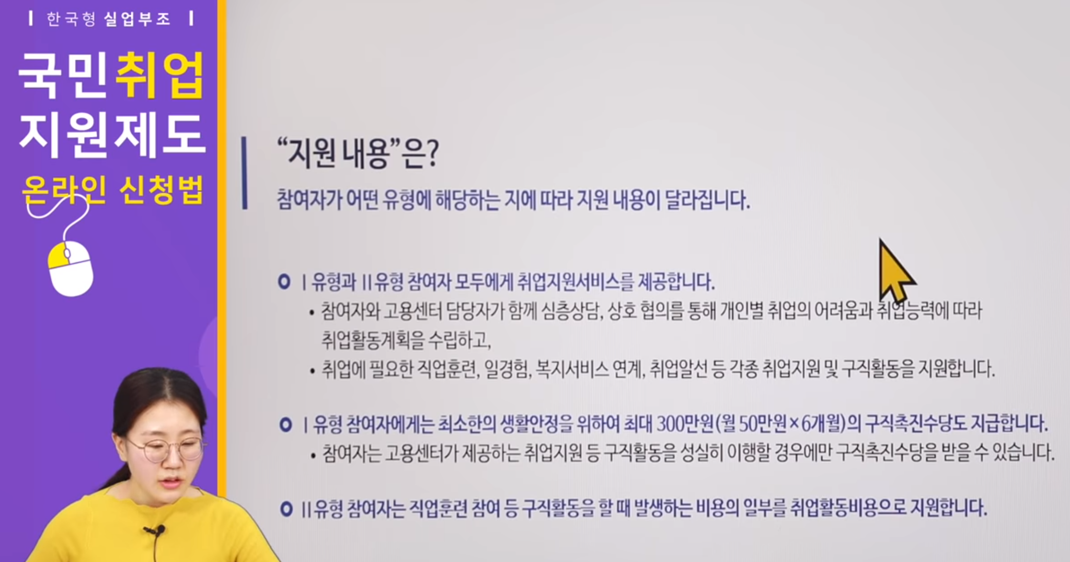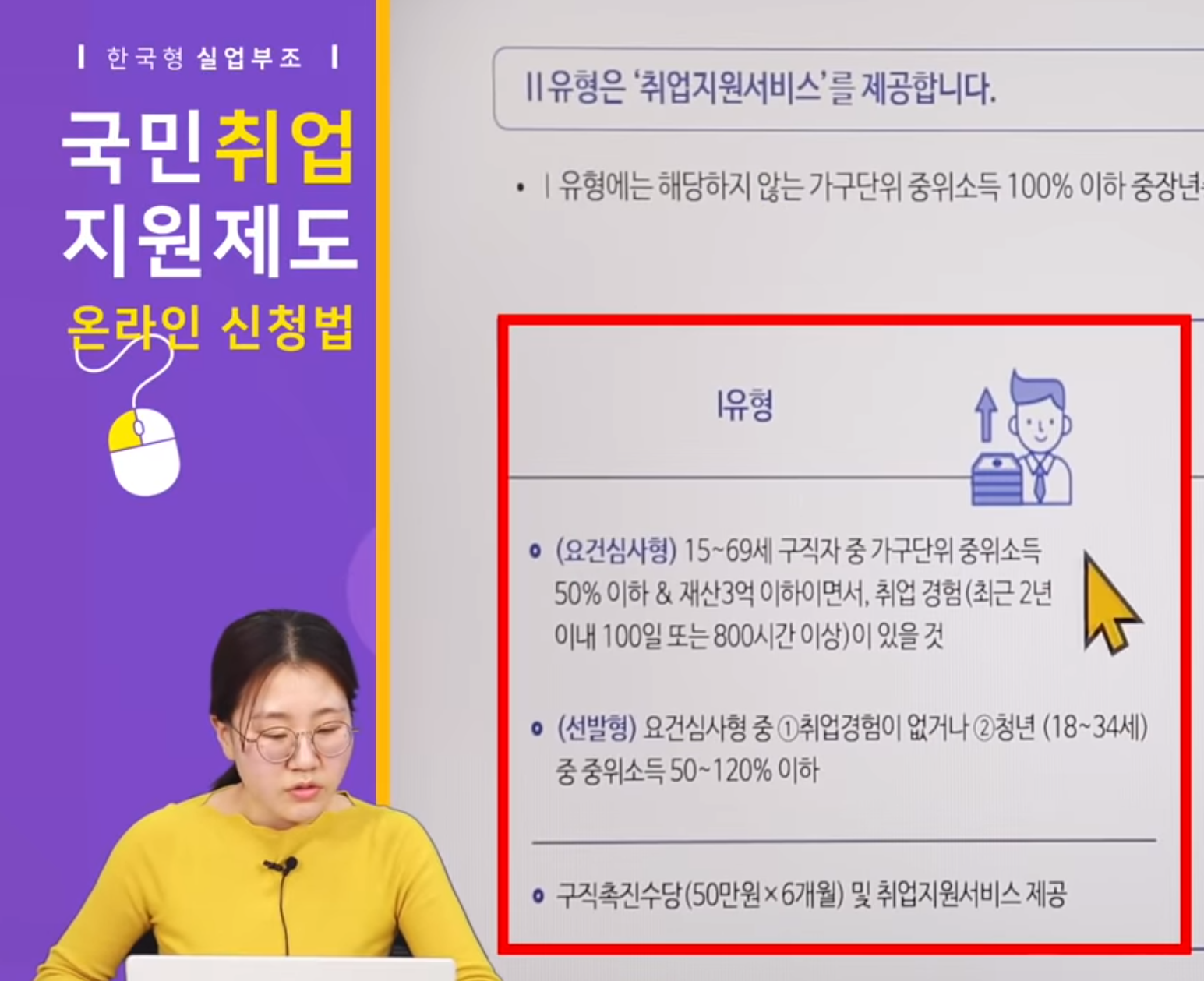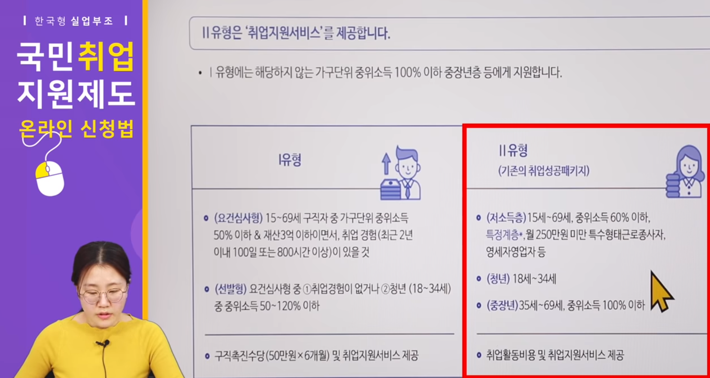 1유형과 2유형으로 구분되며 차이는 개인별 일자리를 성향에 맞게끔 알아봐주느냐와 먹고살 수 있는 부분까지 케어를 하느냐 마느냐로 나뉘어집니다.