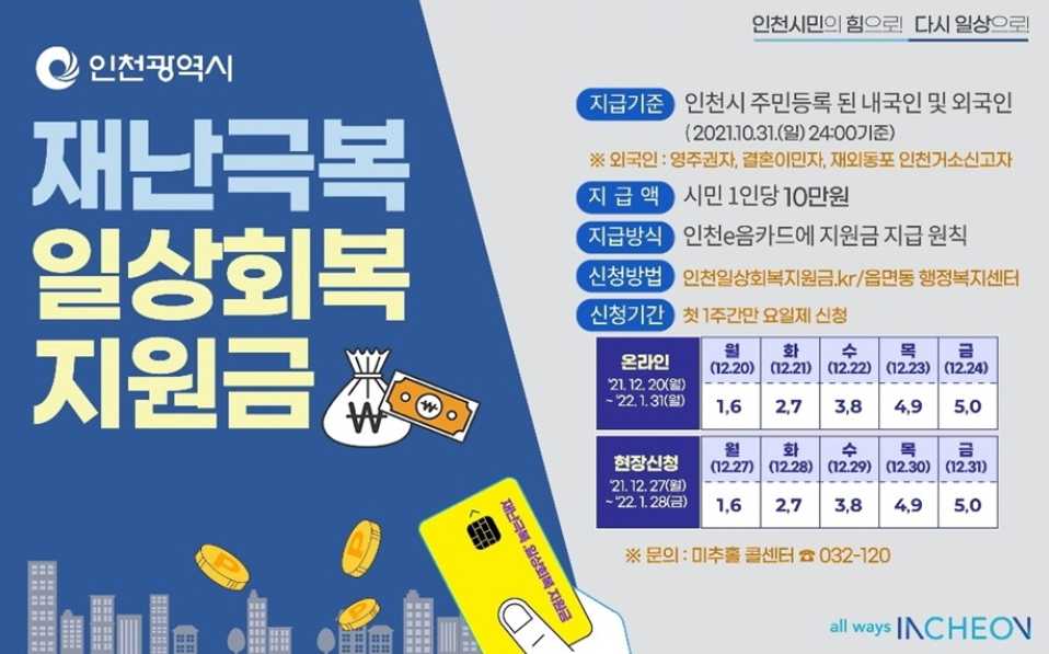 ★ 일상회복지원금 온라인 신청 : https://recovery.incheon.go.kr/