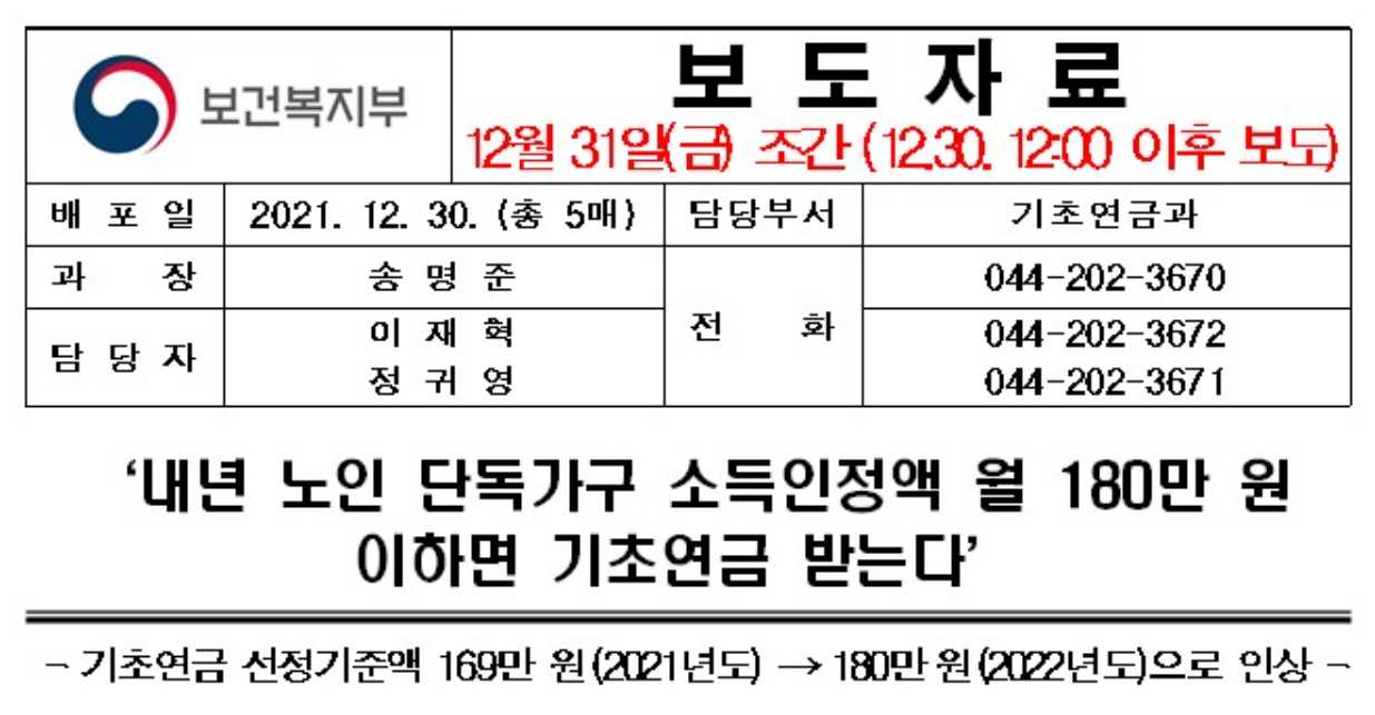 작년과 달리 기초연금 선정기준액 169만원에서 180만원으로 11만원을 인상한다는 내용입니다. 매년 물가 상승분에 비한다면 턱없이 모자란 복지 책정이라 할 수 있지만 이거라도 어딘가 싶기도 합니다. 아예 안주는 것보다는 낫다고 생각하니 말이죠.