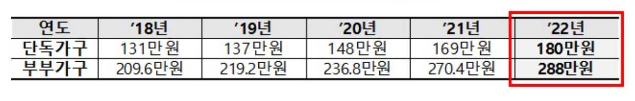 - 단독가구 : 180만원