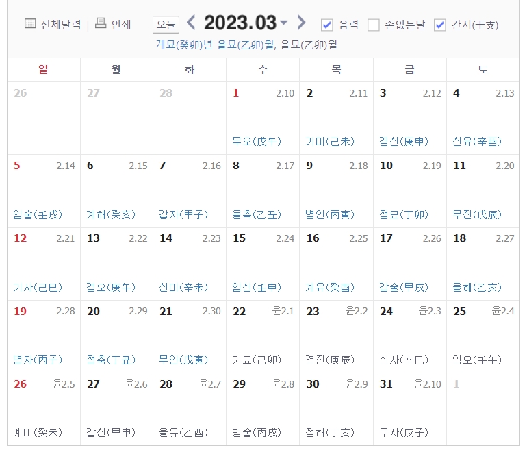 이번 시간에는 2023년 계묘년이 무슨 띠이며 대체 공휴일 등 쉬는날은 몇일이나 있는지 알아보겠습니다. 참고로 2023년 간지달력과 음력달력 등의 표기까지 다 되어 있는 자료인만큼 소중히 사용하시길 바랍니다.