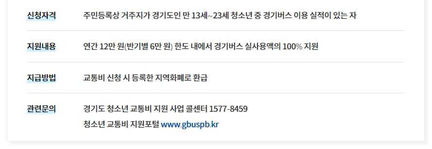 - 지원대상 : 경기도에 거주하는 만 13세 ~ 23세 청소년