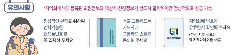 지역화폐사에 등록된 회원정보랑 대상자 신청정보가 정확하게 일치해야 합니다. 후불 교통카드는 카드사에 교통카드 번호를 문의해야 합니다. 본인이 어떤 방식으로 6만원 ~ 12만원을 받을지에 따라서 대처가 달라집니다.